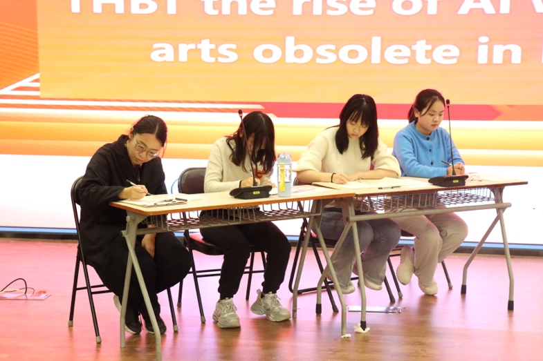 决赛题目为“THBT the rise of AI will render the liberal arts obsolete in higher education”,环节采用国际通行的英国议会制辩论模式(BP制),选手自由组队并抽签决定辩位,就富有时代性与思辨性的决赛辩题进行了深度论辩。引经据典、条分缕析,充分展现出中财大青年的宽广知识视野和逻辑思辨能力,以及时代洪流下的敏锐思考。